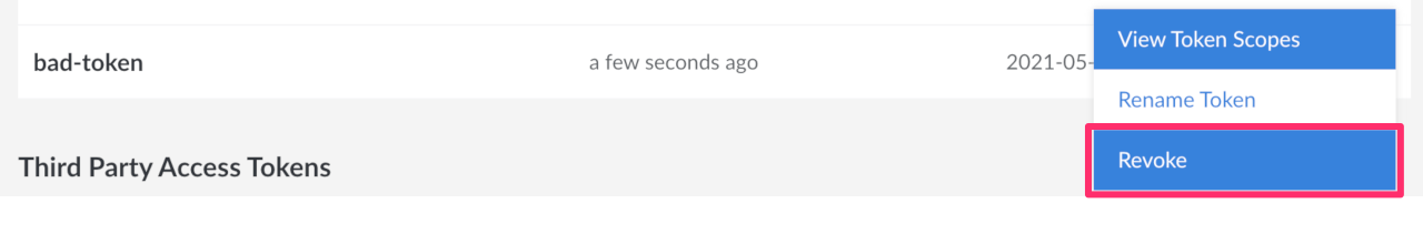 Find the token you wish to revoke and click the more options ellipsis to open the options menu and select Revoke Token.